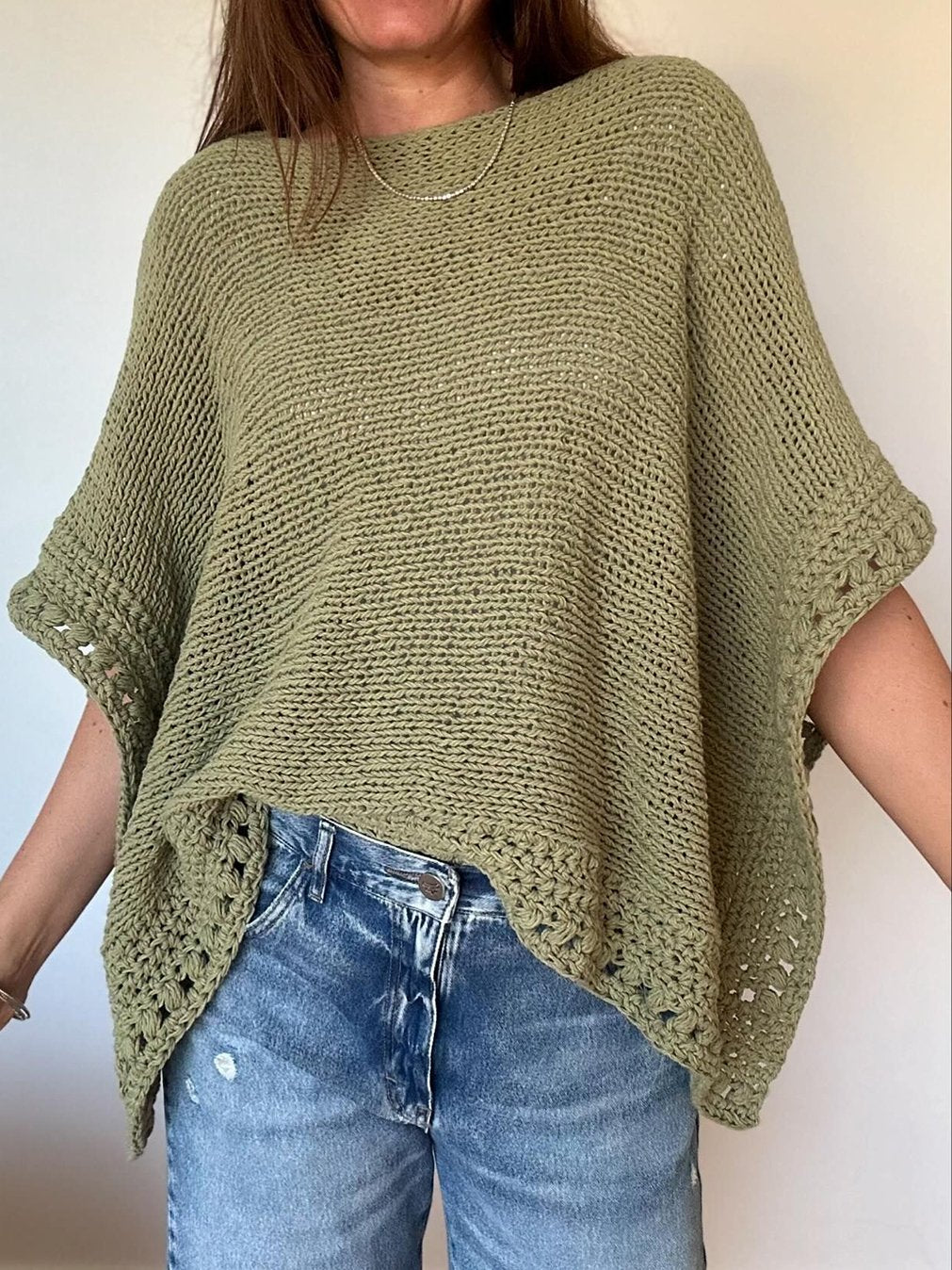 Damski luźny, swobodny sweter z wycięciem pod szyją